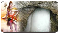 Amarnath is 145 km east of Srinagar in Kashmir. There is an ice Silva-linga here that changes size with the seasons, and also as the moon waxes and wanes it becomes bigger and smaller. On the full moon day the linga is about 6 ft high. Each year on the full moon day of July-August (Sravana) when the Siva-linga attains its maximum height there is a festival at this cave temple. |